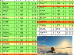 Ač se mi závodit nechtělo, byl to nakonec pěkný závod - 72 přihlášených z 9ti zemí, z toho 11 žen, jeden 10ti letý kluk, 4 snowboardy, ve třech kategoriích - singel skin, nafukovačky, uzavřené komory.